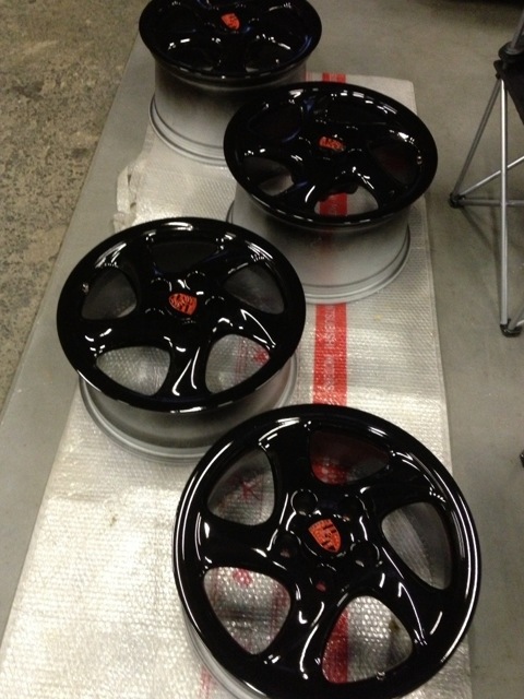 センターキャップはあえてポルシェマーク!! そしてマークを赤にペイント☆